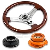 NRG-SRK-101H+0151CH+250OR, NRG Innovations 13" 330mm Deep Dish Style Wood Grain Silver Spokes Racing Steering Wheel Combo with 6 Hole Short Hub Adapter with Gen 2.5 Orange Quick Release Kit SRK-101H