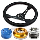 | ✚✚✚ NRGSRK110HRG+200SL+101BL+018R, NRG Innovations 13.78" 350mm 3" Deep Dish Style Black Leather Red Stitch Black Spokes Racing Steering Wheel Combo with 6 Hole Short Hub Adapter with Gen 2.0 Silver Quick Release with Blue Lock Hub Kit SRK-110H NRG Quick Release features many options that conventional ball-locking quick release system do not. It is specially engineered with raised sections to prevent the scratching and stretching of the hub while a self locking feature adds increased safety and functionality. Features racing styled for added style and look. Each unit is made from the highest quality aircraft grade aluminum and is anodized for maximum durability and finish.